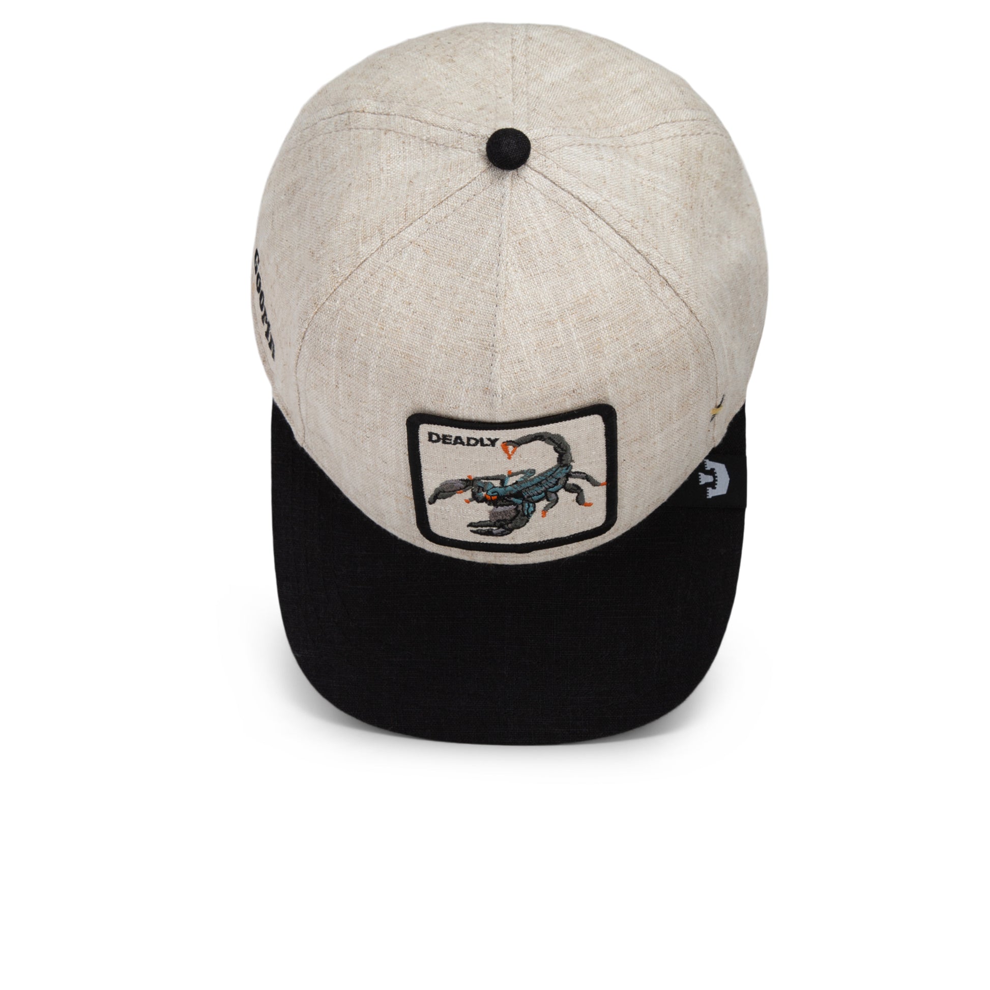 Diese Cap hat mehr Biss als dein letzter Energy-Drink! Mit dem Deadly Scorpion auf der Front sendest du eine klare Botschaft: Nicht anfassen – außer, du magst es gefährlich! Das natürliche Leinen-Design trifft auf einen tiefschwarzen Schirm und macht diese Cap zum ultimativen Gift für alle Fashion-Jäger. Perfekt für alle, die stechen, bevor sie gestochen werden! 🔥