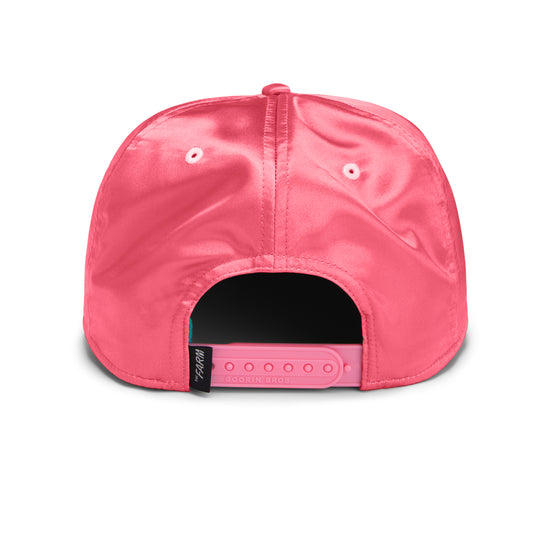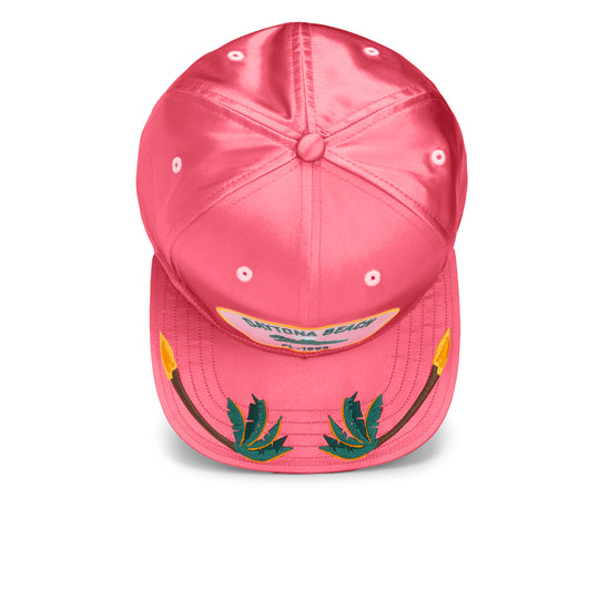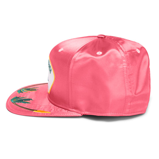 Der glänzende Magenta-Ton trifft auf farbenfrohe Stickereien im Schirm – exotisch, laut, selbstbewusst. Der feste Schirm und die klassische Snapback-Passform sorgen für optimalen Sitz – ob du gerade den nächsten Beachtrip planst oder einfach nur auffallen willst.