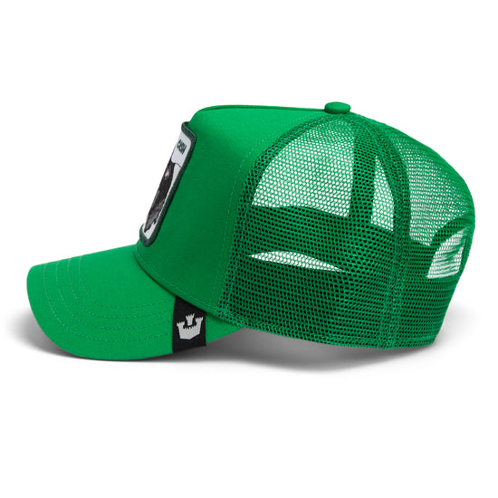 Mit ihrer leuchtend grünen Grundfarbe, farblich abgestimmtem Mesh und gebogenem Schirm ist diese Goorin Cap nicht nur auffällig, sondern auch funktional. Die luftige Rückseite sorgt für angenehme Belüftung, der Snapback-Verschluss garantiert einen individuellen Fit – ob auf dem Land oder mitten in der City.